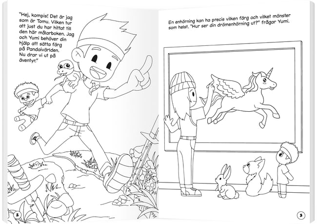 Följ med på spännande och roliga äventyr och måla med Yumi och Tomu. Boken är i storlek A4 och innehåller 24 sidor.