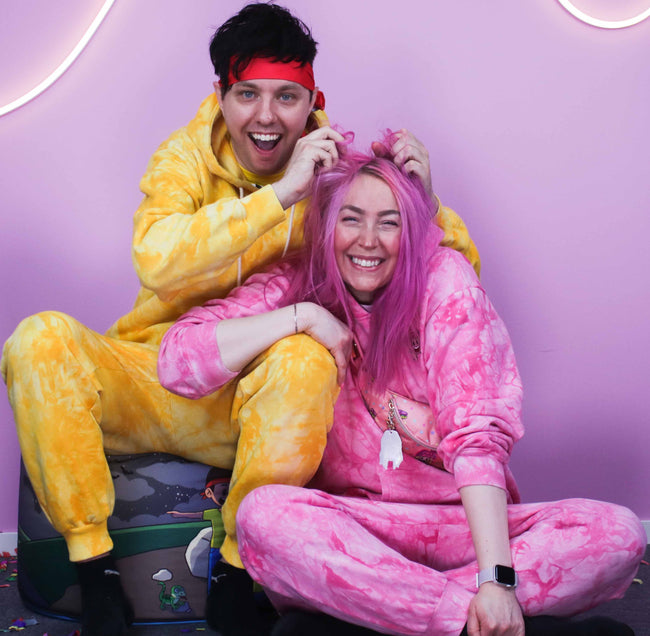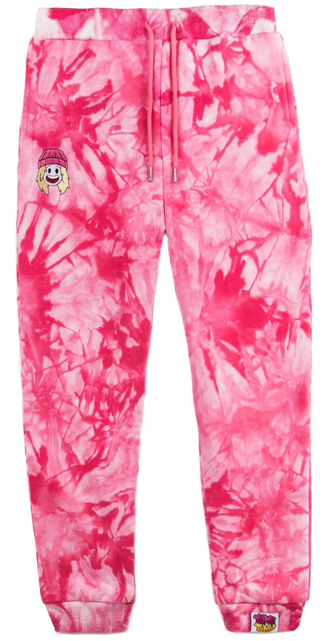 Yumis rosa mjukisbyxor i tie dye! Dessa rosa tie dye byxor passar bäst ihop med vår matchande luvtröja.