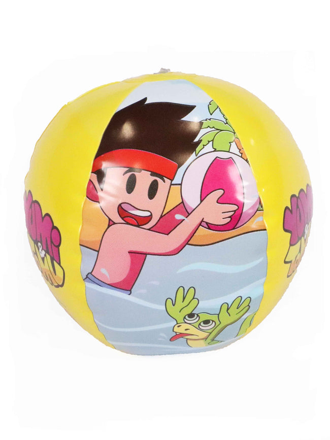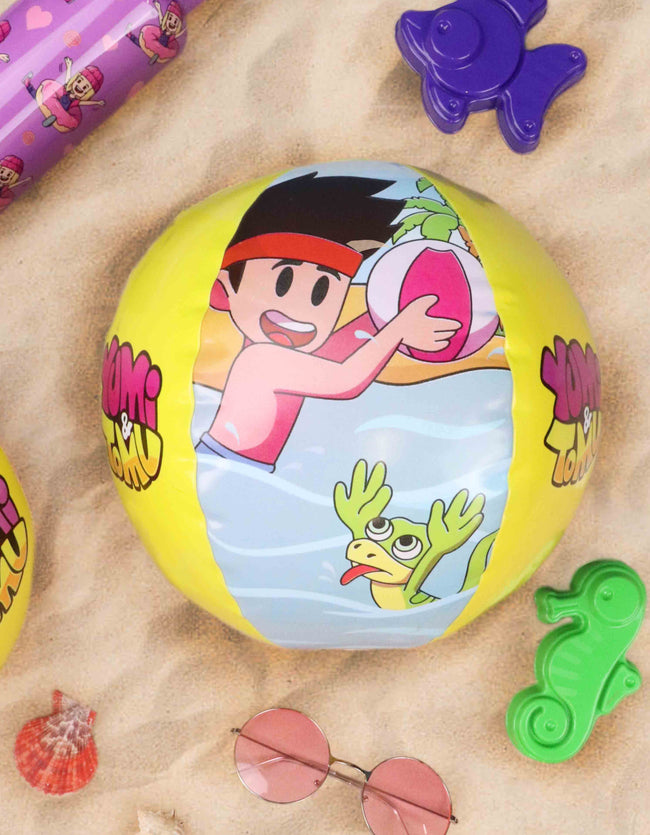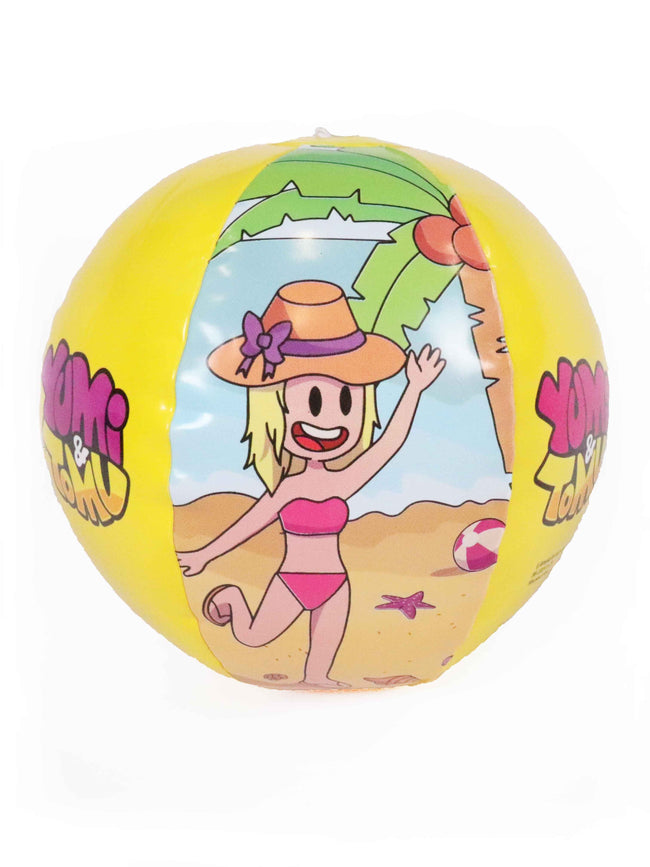 Nu har Yumi & Tomu en egen badboll som är perfekt för stranden, poolen eller lek på gräsmattan. Självklart är deras kompis Jeff med på ett hörn.