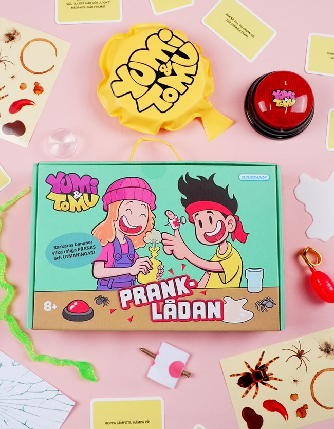 Yumi och Tomus pranklåda är äntligen här och du har nu möjlighet att bli mästare på pranks. Den här lådan innehåller allt du behöver för att göra skojiga bus och roliga utmaningar. 🤩