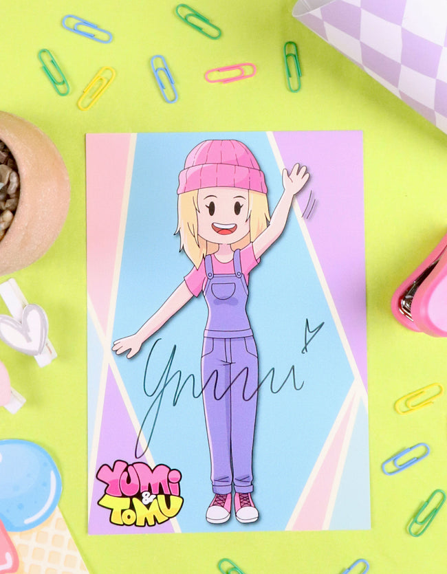Signeringskort med Yumis egna autograf på tjockt papper.
