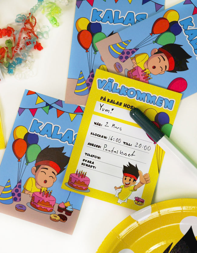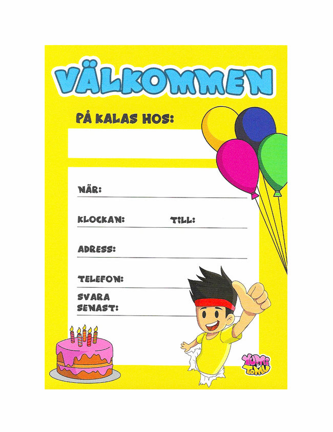 Bjud in dina kompisar med dessa härliga inbjudningskort så blir det garanterat ett skojigt kalas! Både framsidan och baksidan pryds av ett fint motiv av Tomu.